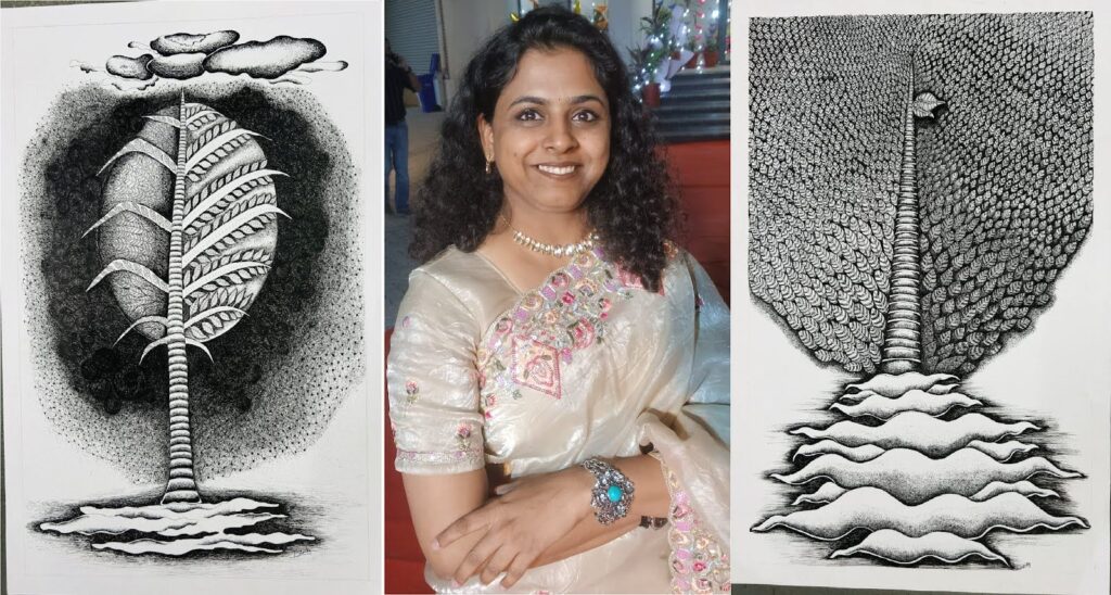 भीलवाड़ा। राजस्थान ललित कला अकादमी, जयपुर द्वारा आयोजित 66वीं वार्षिक कला प्रदर्शनी में भीलवाड़ा की प्रतिभाशाली कलाकार दीपिका पाराशर की दो उत्कृष्ट कलाकृतियों का चयन हुआ है। इस प्रतिष्ठित प्रदर्शनी के लिए प्रदेशभर से कुल 64 कलाकृतियों का चयन किया गया है, जिनमें दीपिका की कृतियां विशेष आकर्षण का केंद्र रहेंगी। प्रदर्शनी में चयनित दीपिका की पहली पेंटिंग ‘अनंत की ओर’ तथा दूसरी कृति ‘प्रकृति का द्वैत’ है। दोनों ड्राइंग्स का आकार 4 फीट गुणा 3 फीट है। उल्लेखनीय है कि इससे पूर्व भी दीपिका की कलाकृतियां देश के अनेक प्रमुख शहरों में प्रदर्शित हो चुकी हैं और उन्हें कला जगत में सराहना मिलती रही है। अनंत की ओर’ कृति प्रकृति की गहराई, निरंतरता और जीवन के प्रवाह को सशक्त रूप में अभिव्यक्त करती है। पत्तियों जैसी बनावट वाले रूप जीवन, विकास और संरक्षण के प्रतीक हैं, जो केंद्र से उठती एक ऊर्जा धारा से जुड़े हुए प्रतीत होते हैं। नीचे की लहरदार संरचनाएँ धरती की परतों अथवा जल की गति का आभास कराती हैं। बारीक रेखांकन और सघन टेक्सचर इस चित्र में धैर्य, संतुलन तथा प्रकृति से मानव के गहरे संबंध की अनुभूति कराते हैं। वहीं दूसरी कृति ‘प्रकृति का द्वैत’ एक वृक्ष के माध्यम से जीवन के दो पक्षों को दर्शाती है। एक ओर व्यवस्थित पत्तियाँ अनुशासन, चेतना और विकास का प्रतीक हैं, तो दूसरी ओर गहरे शेड्स और बिखरी बनावट प्रकृति के रहस्यमय एवं भावात्मक पक्ष को उजागर करती है। केंद्र में स्थित तना संतुलन का प्रतीक बनकर दोनों पहलुओं को जोड़ता है। ऊपर तैरते बादल और नीचे जल की परतें जीवन के परिवर्तन, प्रवाह और निरंतरता को अभिव्यक्त करती हैं। यह संपूर्ण रचना मन, प्रकृति और आत्मा के बीच अद्भुत सामंजस्य स्थापित करती है। दीपिका पाराशर की इस उपलब्धि पर कला प्रेमियों और शहरवासियों ने हर्ष व्यक्त किया है। यह चयन न केवल उनकी व्यक्तिगत सफलता है, बल्कि भीलवाड़ा के कला जगत के लिए भी गौरव का विषय है।